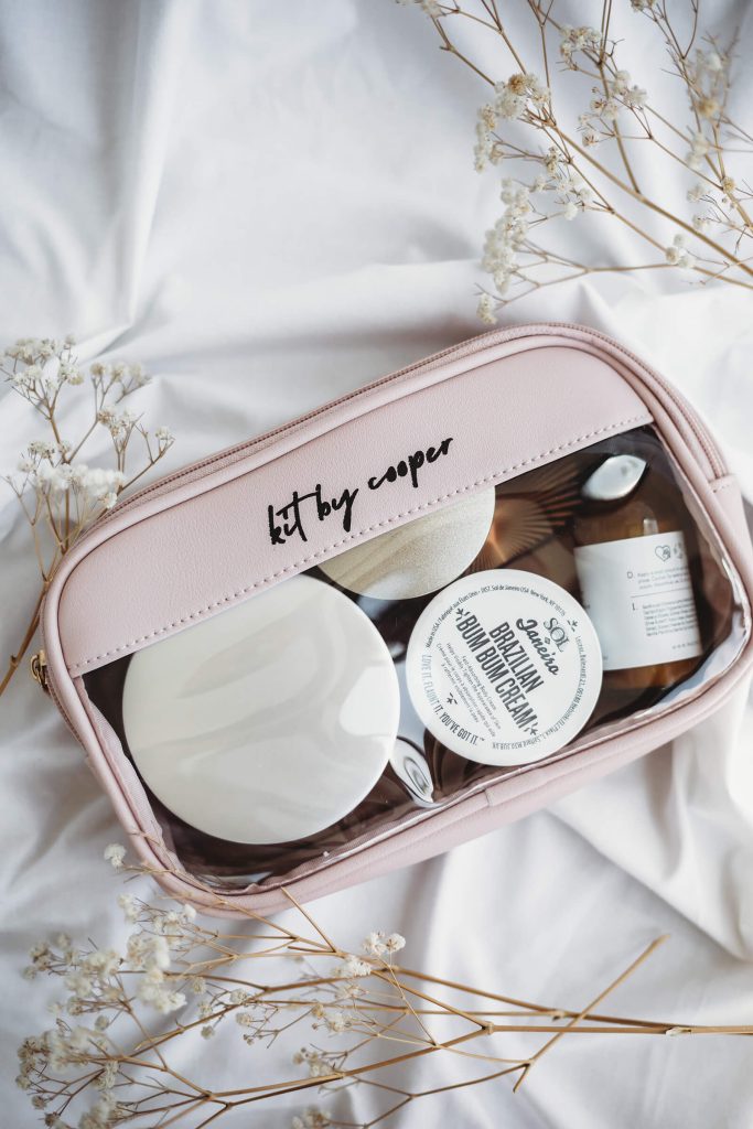 I had my first baby in 2021, and excitedly packed my nappy bag with all the necessities. I had been waiting so long to be able to buy my dream nappy bag and I could not wait to use it! That bag sat perfectly packed until the day I gave birth to my beautiful boy, Cooper. Within a few hours, the inside of this bag was an absolute mess. Despite the strategically placed pockets and compartments, I was constantly rummaging through to find what I needed. I ended up using plastic Ziplock bags and using a black permanent marker to mark each bag to keep things somewhat organised. I remember thinking to myself, “how ridiculous that I have this beautiful and expensive nappy bag, and it’s filled with cheap, ugly, plastic Ziplock bags”. Then it hit me that I needed little personalised pouches to keep things organised.